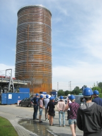 Besichtigung des Stahlturms des Wärmespeichers von N-ERGIE auf dem Kraftwerksgelände in Nürnberg-Sandreuth.